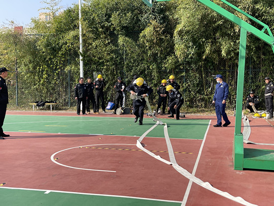 本次安保練兵大比武活動(dòng)共有4家參賽隊(duì)伍,分別進(jìn)行了隊(duì)列展示、室內(nèi)消防栓講解、體能比拼、疏散救援操等比賽。