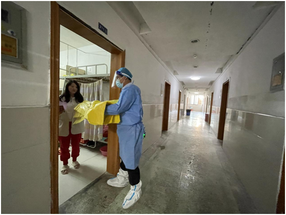 我需要兩個垃圾袋,我需要口罩,我需要……3000余名員工需求保障,他們“有求必應,有需必達”,成了園區(qū)公舍里的“宅急送”。他們每天爬樓上下,為每個房間送上垃圾袋,及時清理生活垃圾,每天微信步數(shù)都在20000以上。