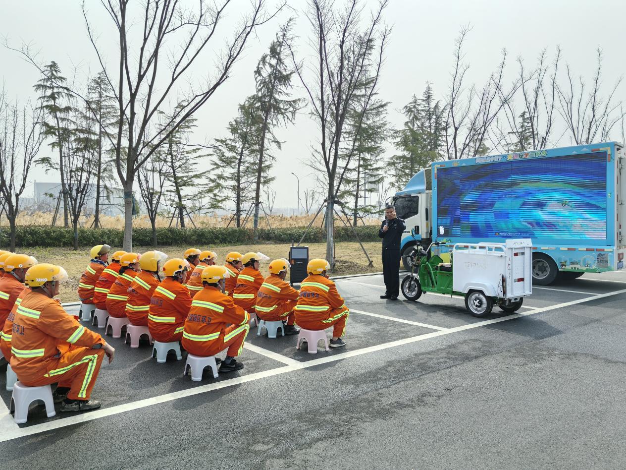 此外,警官同志還針對(duì)環(huán)衛(wèi)工人常見(jiàn)的交通違法行為,如逆行、闖紅燈、隨意橫穿馬路等,進(jìn)行了深入剖析,指出這些行為的危害性,重點(diǎn)講解了騎行電動(dòng)車的注意事項(xiàng)和安全頭盔的正確佩戴方法,提醒大家必須嚴(yán)格遵守交通規(guī)則,確保自身和他人的安全!