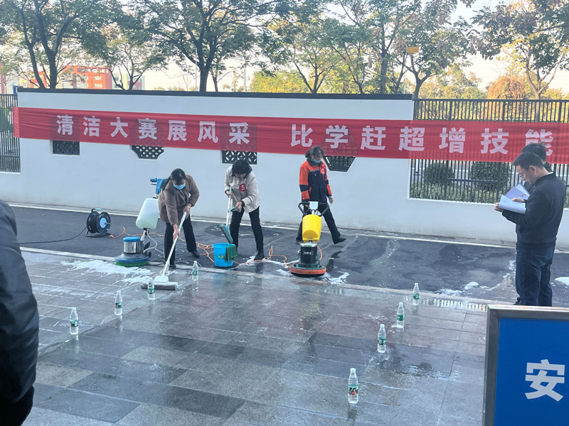 此次大賽分理論知識(shí)和操作技能兩部分。理論知識(shí)主要考核選手對專業(yè)理論知識(shí)的掌握程度;技能實(shí)操則從清潔機(jī)械操作、玻璃清潔等方面進(jìn)行現(xiàn)場考核。