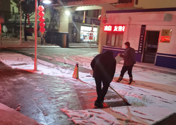在園區(qū)公舍防疫值守的李佃左說道:“雖說疫情來了,但大家伙的心是牢牢團(tuán)結(jié)在一起的,這不一看下雪了,擔(dān)心復(fù)工人員上班時的出行安危,大家伙都忙活起來啦!”當(dāng)晚,建發(fā)公司員工、園區(qū)環(huán)衛(wèi)人員“相約”在轄區(qū)內(nèi)及園區(qū)道路街頭,在嚴(yán)寒中默默堅守,與冰雪爭分奪秒,你鏟我掃、撒布融雪劑,井然有序,從容不亂,大家齊心協(xié)力、配合默契,為保障轄區(qū)內(nèi)通暢竭盡全力。在掃雪除冰的同時,園區(qū)公舍集宿區(qū)工作人員仍然堅守在執(zhí)勤點(diǎn)執(zhí)勤防控,有序做好各項疫情防控工作。