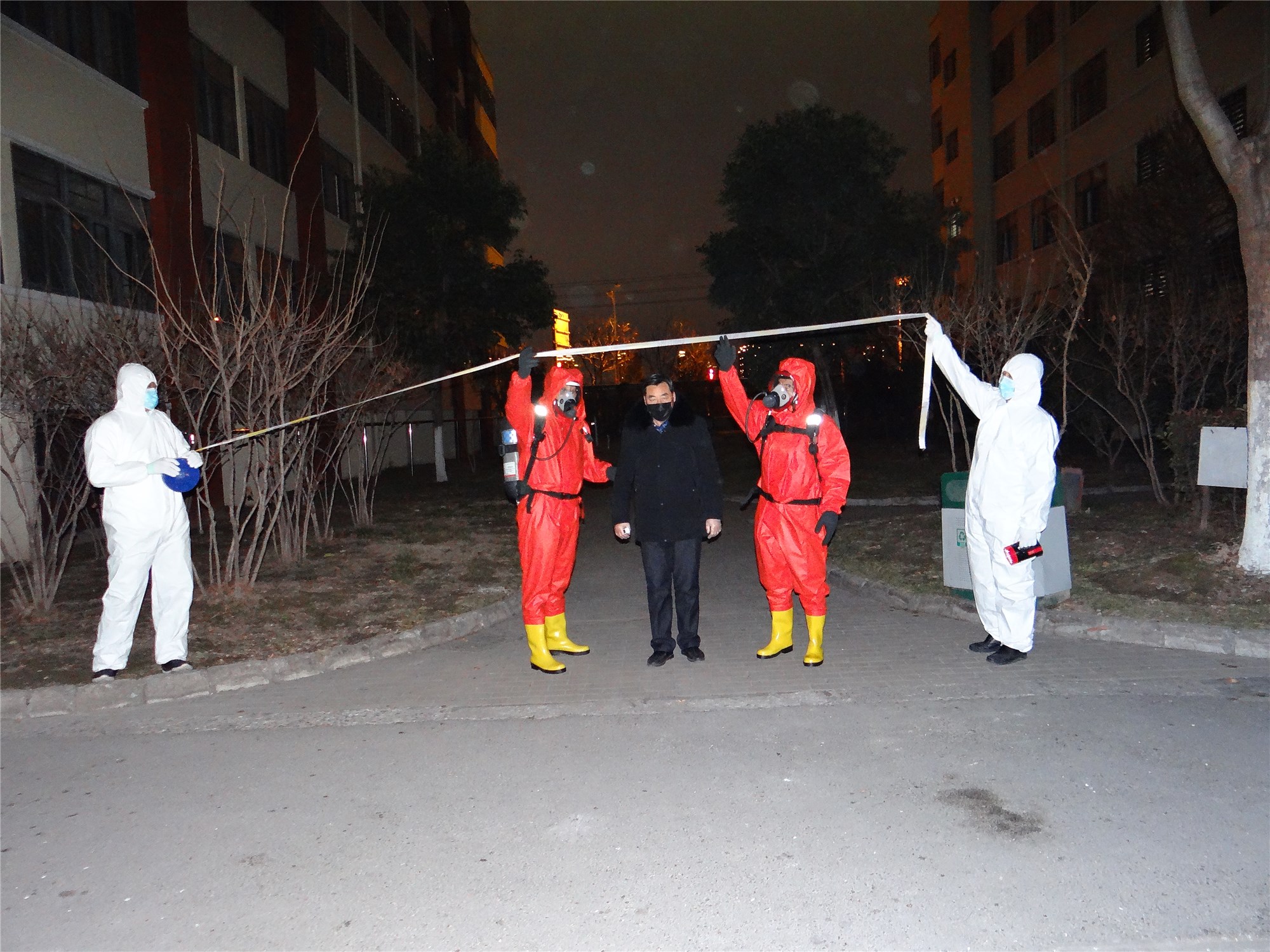 本次演練主要模擬一位5天前從徐州回到園區(qū)公舍的35歲男性患者,因發(fā)熱、咳嗽、咽痛、頭痛現(xiàn)象開始進(jìn)行演練,應(yīng)急小組迅速拉起警戒、轉(zhuǎn)移、指定區(qū)域隔離、消毒,并匯報(bào)相關(guān)部門,按照實(shí)戰(zhàn)應(yīng)急響應(yīng)標(biāo)準(zhǔn),統(tǒng)一領(lǐng)導(dǎo)指揮,工作人員加強(qiáng)個(gè)人防護(hù),演練過(guò)程緊張有序,細(xì)致謹(jǐn)慎,整場(chǎng)新型冠狀病毒肺炎應(yīng)急演練活動(dòng)取得圓滿成功。