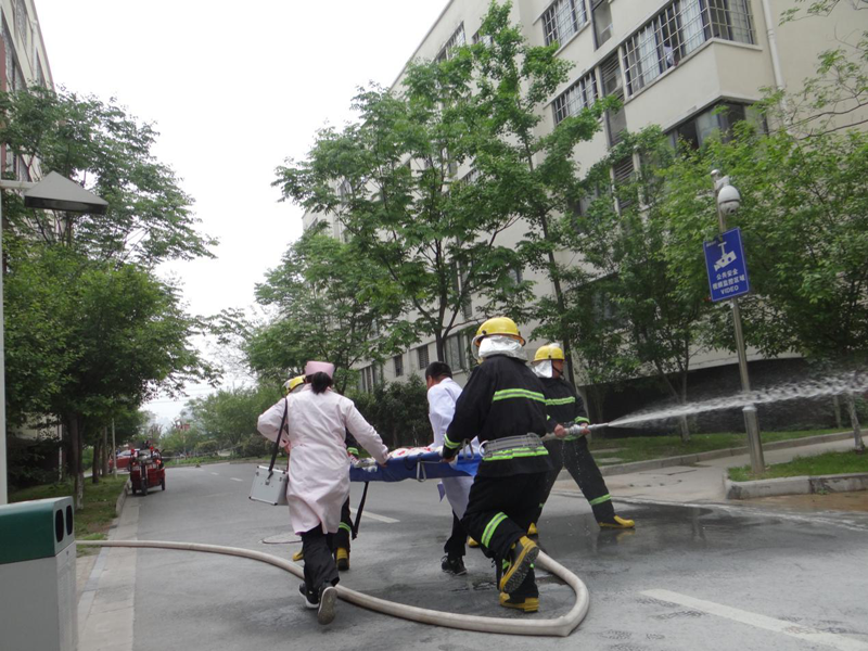 演練開始,物業(yè)部安全員首先講解了消防知識及逃生注意事項,隨后進行人員緊急疏散、傷員救護及火場滅火演練。