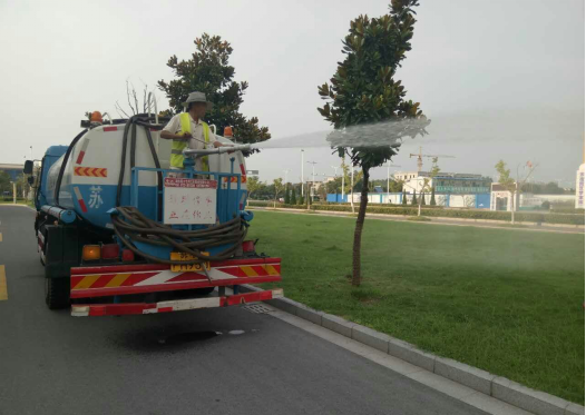 綠化養(yǎng)護(hù)單位派出灑水車和養(yǎng)護(hù)人員針對不同植物生長習(xí)性進(jìn)行澆水養(yǎng)護(hù),對需水量大的苗木進(jìn)一步加大澆灌力度,對無遮擋物的草坪增加澆水頻次,對所移栽的樹木樹穴灌溉2-3次透水等多種舉措進(jìn)行澆水降溫。